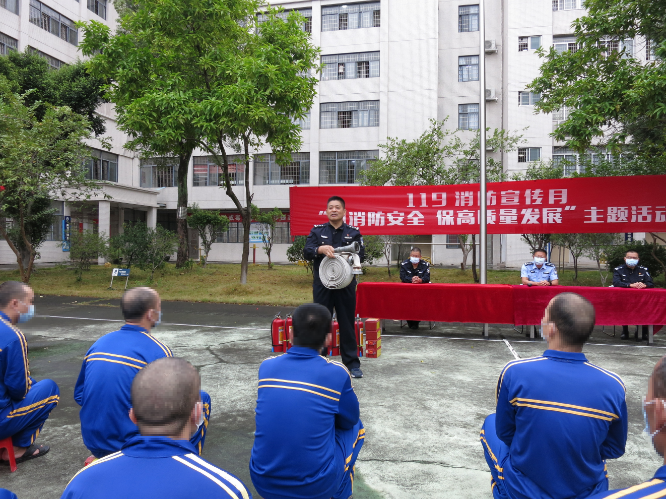 (万子明在消防宣传月主题活动中传授消防安全相关知识)