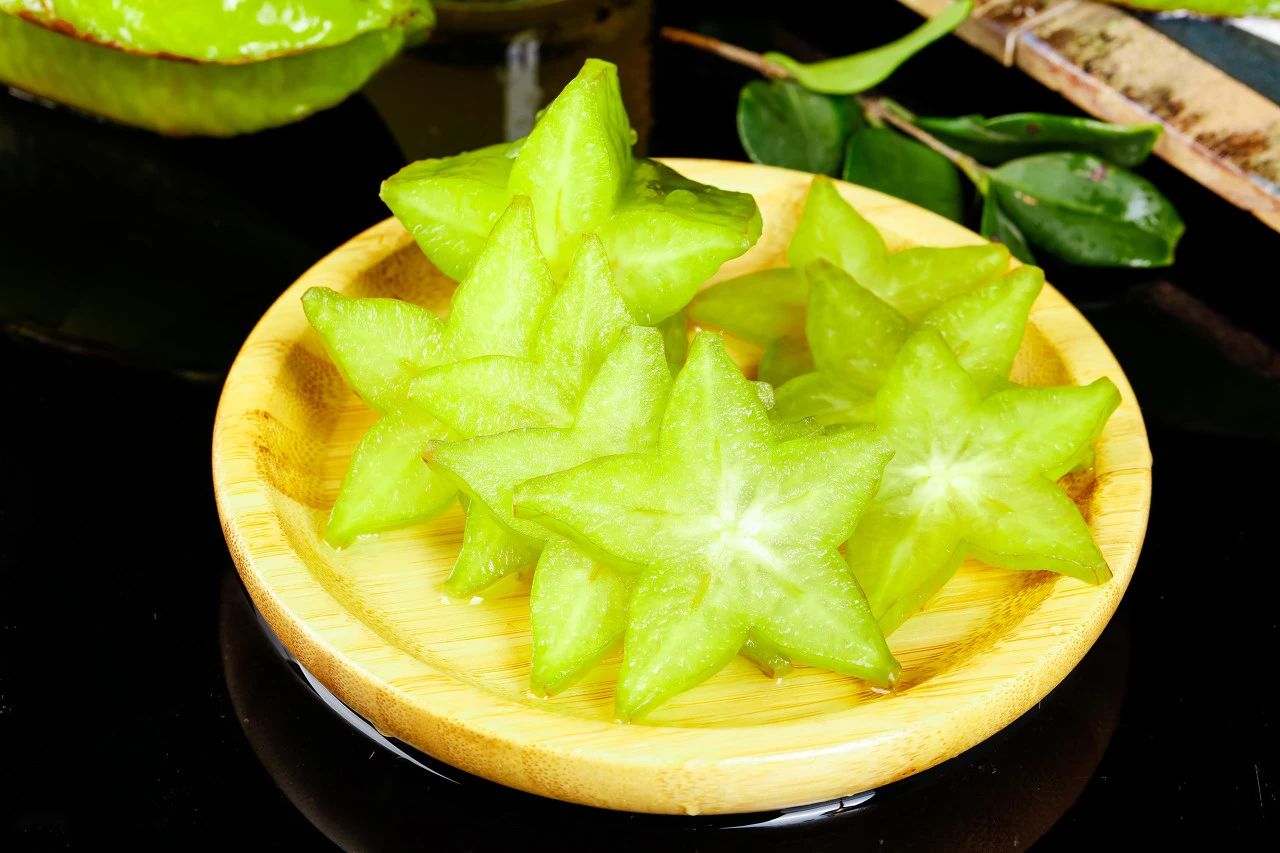 杨桃,又名五角果、五敛子等,因其独特的五角形截面而得名,在国外被称为“星星果”(starfruit)。它的形状独特,味道酸甜,可以直接吃,也可以做成果汁或果酱。