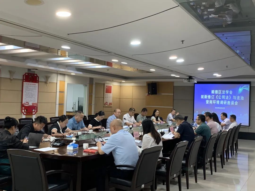 《中华人民共和国公司法》最新修订版已于2024年7月1日正式施行,为了解市场监督管理部门落实《中华人民共和国公司法》最新举措以及《中华人民共和国公司法》修订对企业的实际影响,8月22日下午,顺德区法学会组织学会成员以及美的、联塑、伊之密、东菱、科顺、景顺等区内企业代表走进佛山市顺德区市场监督管理局,开展走访调研活动。区司法局业务科室负责人也出席了本次会议。