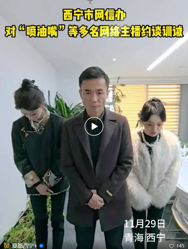 11月29日,记者从青海省西宁市网信办获悉,西宁市网信办会同公安、教育等部门,指导大通回族土族自治县网信办约谈多名网络主播,对相关抖音账号“发动机(压稳)”(ID:anan21411)和“保险杠(压稳)”(ID:xmj_1030)进行关闭账号的行政处罚,并针对其他违规行为对账号运营者进行了训诫。