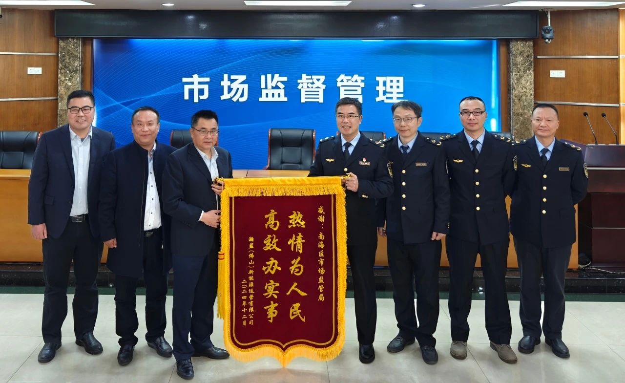 12月24日下午,瀚蓝(佛山)新能源运营有限公司一行四人,专程来到南海区市场监督管理局,赠送印有“热情为人民 高效办实事”的锦旗,对南海区市场监管局在该企业办理充装许可手续期间的高效专业的服务表示感谢!