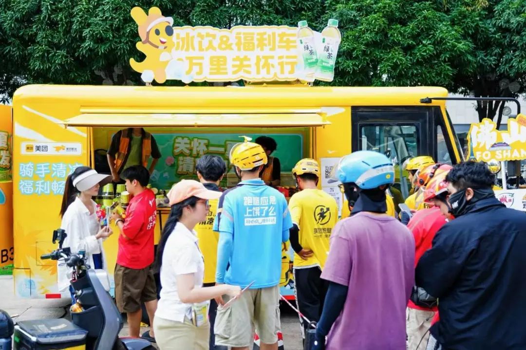 为关怀高温下坚守岗位的新就业群体,近日,“美团2025冰饮福利车佛山站”活动在禅城区铂顿城广场顺利举行。本次活动由市、区两级社会工作部与市场监管部门联合统筹,为骑手、环卫工人、快递员等户外工作者送上夏日“清凉礼包”,传递城市关爱。