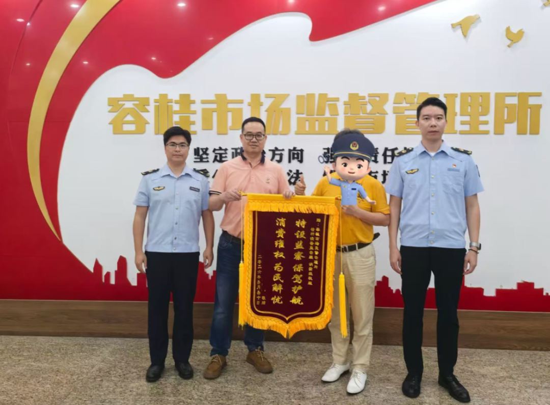 一面锦旗,承载一份认可,更扛起一份责任。近日,一面印有“特设监察保驾护航,消费维权为民解忧”的锦旗,送到了容桂市场监管所。这抹鲜红,是居民的真挚谢意,是对市场监管部门履职实效的见证,更是对“监管为民、服务民生”工作理念的高度认可。