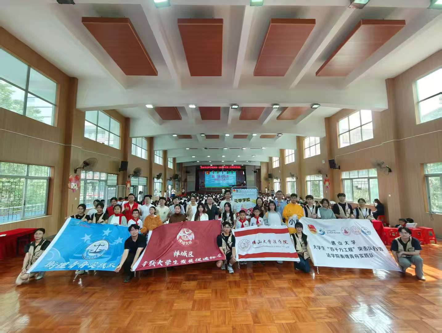 此次普法活动由禅城法院祖庙法庭、禅城检察院祖庙检察室、佛山大学法学院悉心指导,祖庙街道综治办、宣教办、司法所、团工委、佛大法学院团委、元甲学校、禅城大协等多部门联合主办,佛山大学衡理青舟 “百千万工程” 实践队承办,广东千度律师事务所、佛山曙光金子口腔医院全力支持。