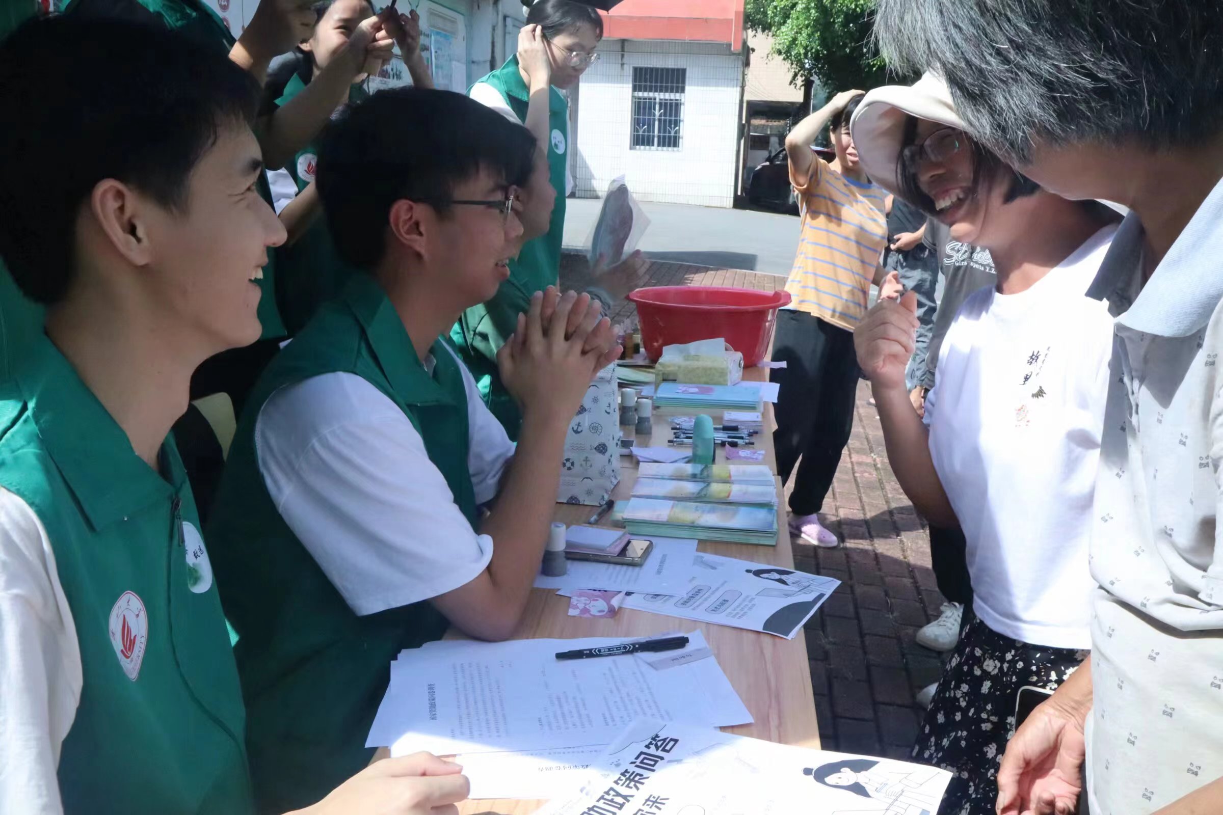 阳光灿烂的日子里,里洞镇的脉搏跳动得格外有力。在这生机勃勃的时刻,青衿致远实践团的年轻面孔出现在熙熙攘攘的街头上,他们携带着一份特别的使命——向公众普及国家资助政策,让温暖的政策之光照进每个需要帮助的家庭。实践团的成员们在繁华地段搭起了醒目的摊位,上面悬挂着资助政策的横宣传幅,吸引了过往行人的目光。他们不仅仅是政策的传播者,更是连接政府与民众的桥梁。通过设计精巧的问答游戏,青衿致远队员们让枯燥的政策条文变得生动有趣。