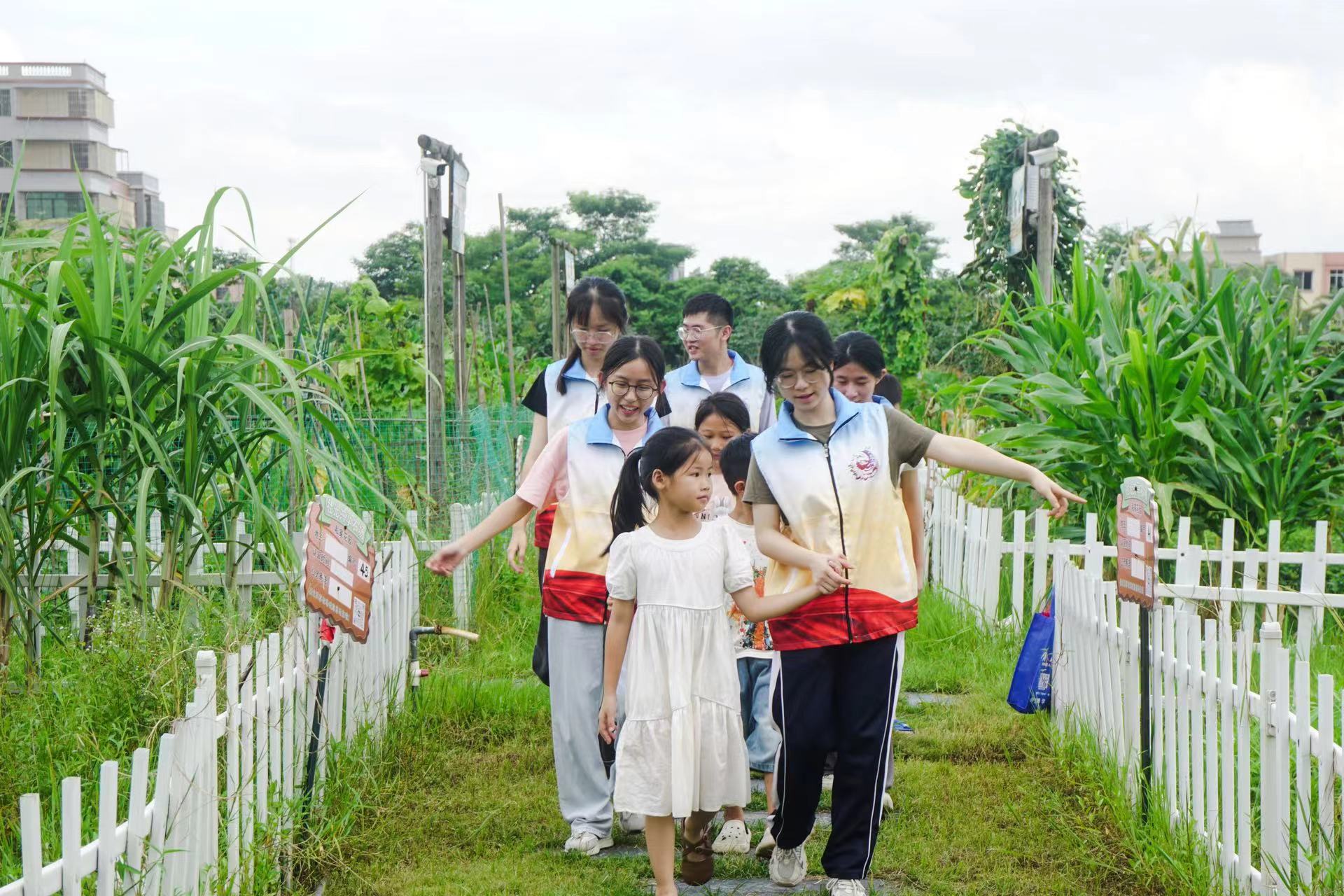 潮州7月13日电(通讯员 林希妍)广东省潮州市湘桥区桥东街道社光村依山傍水,风景秀丽,交通便捷,地理位置优越;这里,有郁郁葱葱的笔架山,有游人如织的慧如公园,半面环山半面环水,让人禁不住停下脚步。实践队成员来到社光村共享农场参观,带领孩子们感受绿美乡风。