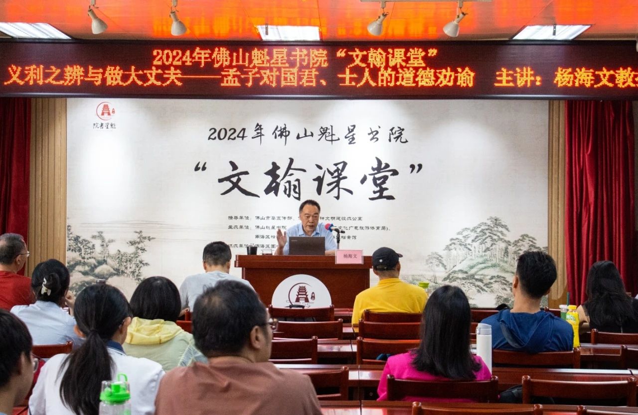 8月3日下午,魁星书院“文翰课堂”《中国文化与哲学二十讲》第七课开讲。本期特邀嘉宾为中山大学哲学系教授杨海文,主讲题目为《义利之辨与做大丈夫——孟子对国君、士人的道德劝谕》。