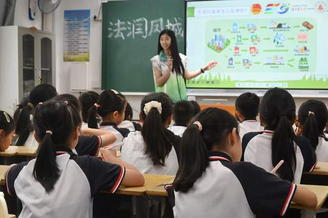 2025年7月佛山大学法学院“法润凤城”实践队来到潮州市春光小学开展义教课程活动。在这节课中,义教老师用生动活泼、简单易懂的语言和表达,使孩子们认识到了生活垃圾如何简单的分类,哪些是有害垃圾,哪些需要特别处理。绿水青山就是金山银山,垃圾分类不仅可以提高我们资源的利用效率,减少资源浪费,同时还可以更好地推动绿美生态的可持续发展。这堂课可以有效地培养孩子们的生态保护意识与观念。